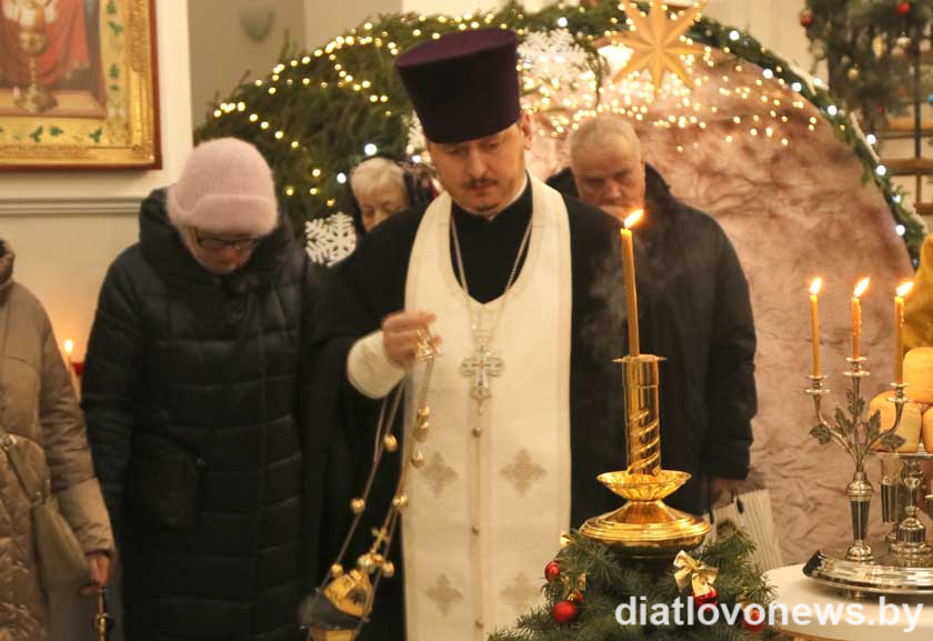 Святочная служба вядзецца ў гонар Хрыста, які нарадзіўся, каб пазбавіць людзей ад рабства граху і смерці пасля падзення і выгнання з раю. Дзень перад Нараджэннем Хрыстовым – куцця. Хрысціяне асвячаюць у храме “сочыва” – страву з зерня, аздобленую мёдам і сухафруктамі, якая сімвалізуе жыццё. З вечара 6 студзеня пачынаецца царкоўная служба. У вернікаў ёсць магчымасць запаліць лампадку ад Віфлеемскага агню, які напярэдадні быў дастаўлены ў праваслаўныя храмы, каб прынесці гэту святыню ў свае дамы. Айцец Іаан дапамог прыхаджанам запаліць іх лампадкі.