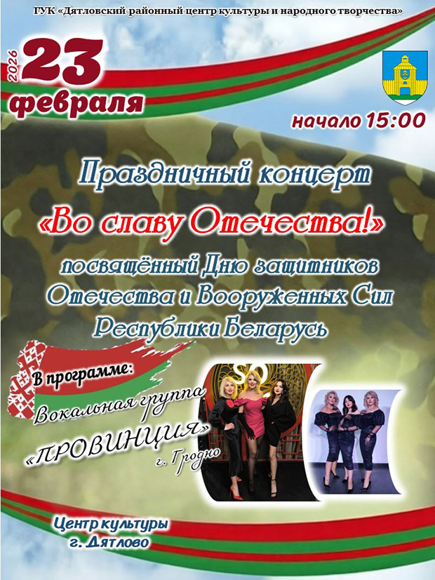 Важнае Да ведама грамадзян Культура і адпачынак 1 min read 10639 Приглашаем на концерт administrator 20 февраля, 2026 0 Подписывайтесь на телеграм-канал «Дятлово ОНЛАЙН» по короткой ссылке @gazeta_peramoga