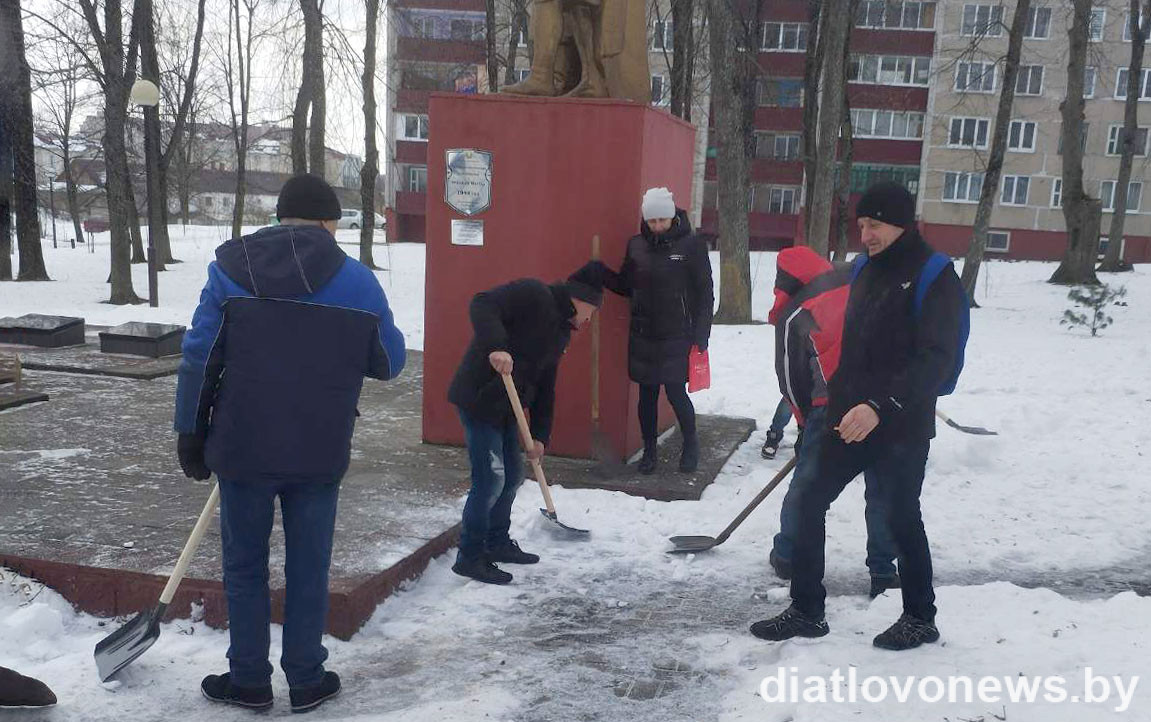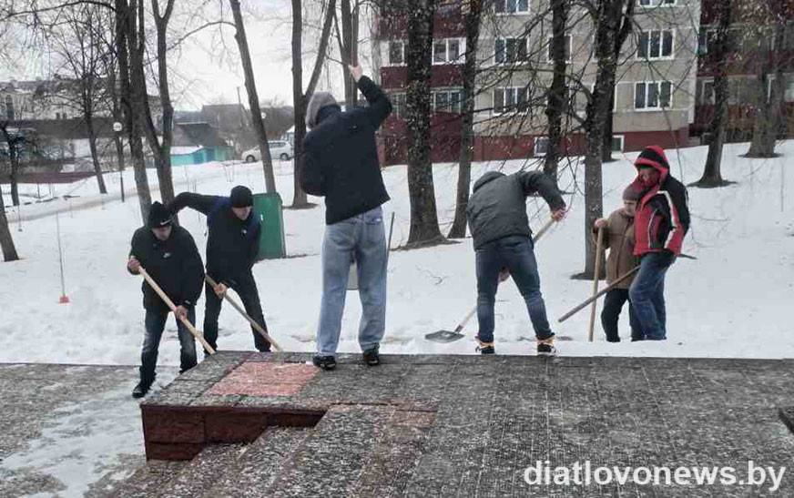После этого неработающие граждане были привлечены к общественно полезному труду – убирали снег возле памятника павшим воинам в парке города Дятлово.