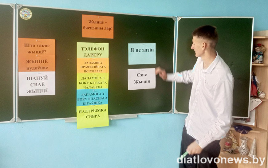 З гэтай мэтай у рамках месячніка прафілактыкі крызісных сітуацый у Дварэцкай сярэдняй школе сярод вучняў 8-11 класаў прайшла адзіная інфармацыйная гадзіна “Псіхалагічны дабрабыт падлеткаў”, якая садзейнічала разуменню навучэнцамі асноў псіхічнага здароўя і псіхалагічнага дабрабыту. У ходзе мерапрыемства навучэнцы адказалі на апорныя пытанні, даведаліся аб прыёмах, якія дапамогуць вярнуць сабе радасць жыцця і справіцца з негатыўнымі эмоцыямі і перажываннямі, а таксама патрэніраваліся ў прымяненні некаторых з іх. Да таго ж навучэнцы атрымалі інфармацыю пра ўстановы, якія прадастаўляюць псіхалагічную падтрымку дзецям і падлеткам у крызісных жыццёвых сітуацыях у Рэспубліцы Беларусь.