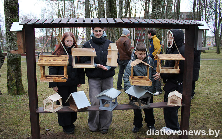 Сіламі лескомаўцаў зроблены стойкі і трымальнікі для кармушак. Атрымалася нават не проста сталовая для птушак, а невялікі птушыны гарадок у парку па вуліцы Міцкевіча ў Дзятлаве. Частка кармушак развешана на тэрыторыі школы.