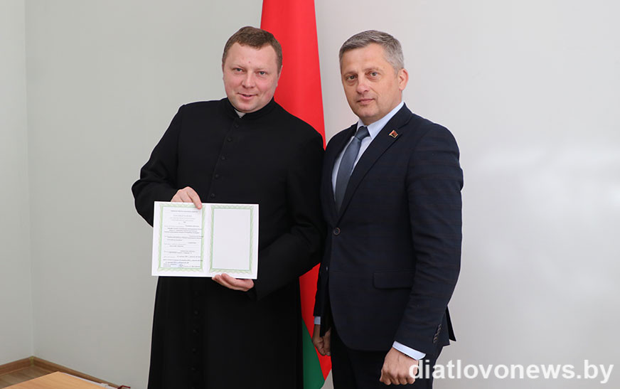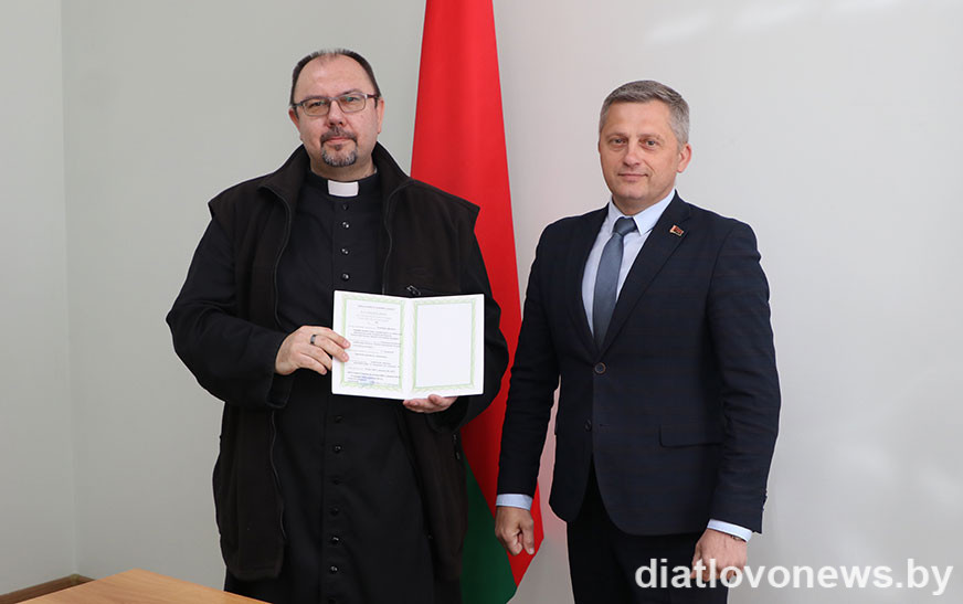 У ходзе сустрэчы намеснік старшыні райвыканкама Вадзім Бялятка абмеркаваў са святарамі Дзятлаўшчыны надзённыя пытанні і ўручыў ім пасведчанні аб рэгістрацыі рэлігійных супольнасцяў.