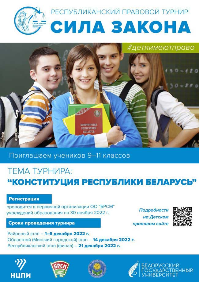 К участию в турнире приглашаются ученики 9-11-х классов. “Интеллектуальное состязание пройдет в три тура. Районный стартует уже 1 декабря и продлится по 6-е. Областной (Минский городской) – состоится 14 декабря. Имена победителей организаторы назовут по результатам проведения республиканского финала – 21 декабря. С подробной информацией о проведении турнира можно ознакомиться на Детском правовом сайте”, – дополнил он.