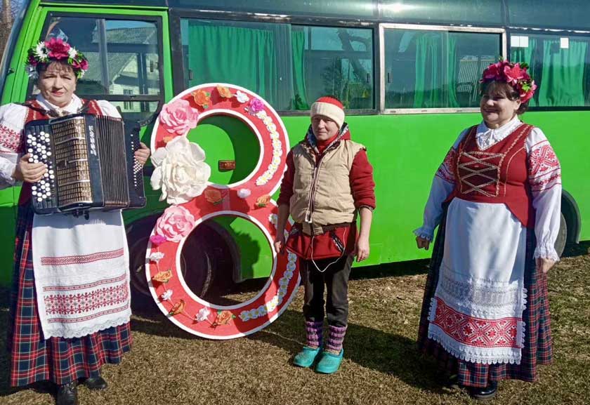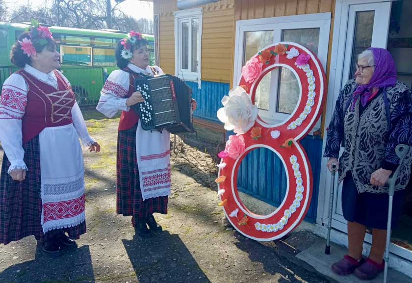 Коллектив сектора нестационарного обслуживания населения с концертным марафоном «Песенный букет в подарок» посетили отдаленные деревени Юровичи, Трухоновичи, Кашкалы, Лудичи, Лагуны и Воловники, где поздравили всех прекрасных жительниц с праздником весны.