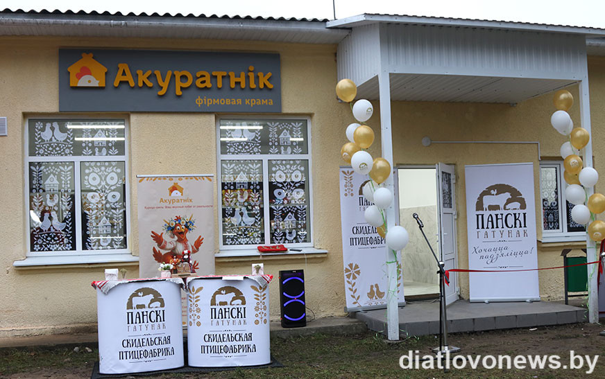 Новы магазін філіяла “Скідзельская птушкафабрыка” ААТ “Агракамбінат “Скідзельскі” расчыніў свае дзверы для пакупнікоў у аграгарадку Дварэц. Знаходзіцца ён на тэрыторыі Дварэцкага льнозавода, але зрабіць пакупкі тут могуць усе жадаючыя. У Дзятлаўскім раёне даўно ведаюць і любяць якасныя мясныя вырабы гэтага вытворцы. Цяпер у магазіне “Акуратнік” можна будзе ў любы час набыць прадукцыю філіяла: ад свежага мяса куранят-бройлераў да паўфабрыкатаў і гатовых вырабаў з мяса птушкі, свініны і шпіка.