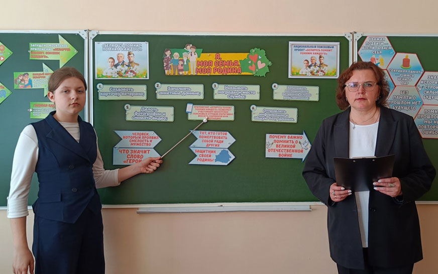 У рамках рэалізацыі праекта “Я. Мая сям’я. Мая Радзіма” для навучэнцаў 7 класа гімназіі № 1 горада Дзятлава прайшло мерапрыемства “Беларусь памятае. Памятае кожнага”. Класны кіраўнік расказала дзецям, што гэты праект – унікальны інфармацыйны рэсурс, які напаўняецца ўсімі наяўнымі звесткамі аб жыцці, подзвігах і ўзнагародах воінаў Вялікай Айчыннай вайны, прадзедаў. Ён аб’яднаў пошукавікаў, гісторыкаў і валанцёраў. Іх задача – вярнуць імёны герояў, аднавіць справядлівасць і даць сем’ям магчымасць даведацца праўду аб сваіх продках. Дзеці адзначылі, што кожны можа ўнесці свой уклад у захаванне памяці, наведваючы музеі і мемарыялы, вывучаючы гісторыю ваенных гадоў свайго краю і біяграфіі ветэранаў і сведкаў ваенных падзей, расказваючы пра вайну і яе герояў сваім блізкім і сябрам.