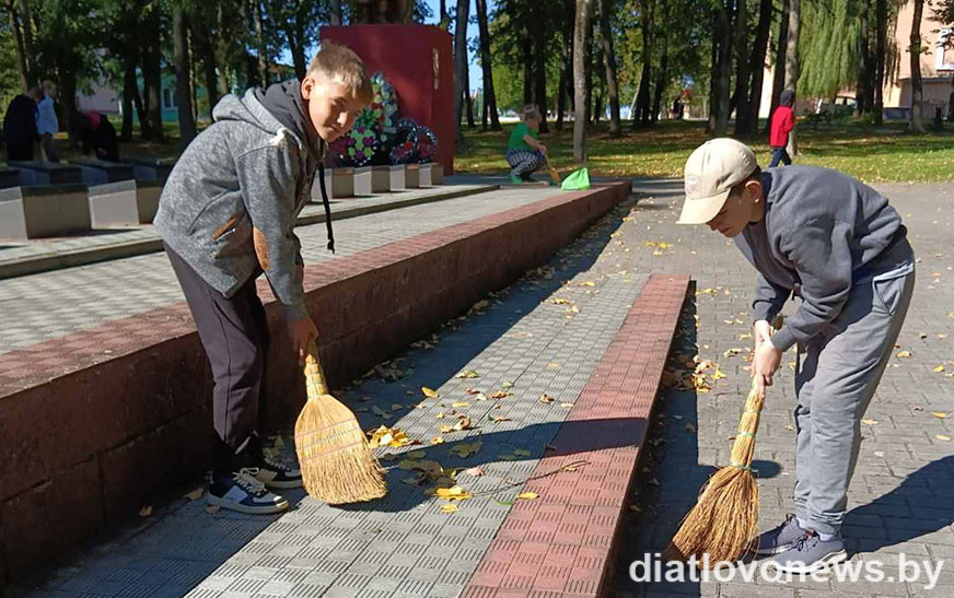 На працягу некалькіх гадзін працы актыўныя ўдзельнікі працоўнай суботы сярэдняй школы № 1 горада Дзятлава імя А. М. Чурылы прывялі ў парадак двор школы, тэрыторыю памятнага знака ў вёсцы Хадзяўляны на месцы гібелі 14 чырвонаармейцаў, помніка Героям Савецкага Саюза Яну Фогелю і Паўлу Пятрову ў Дзятлаве.