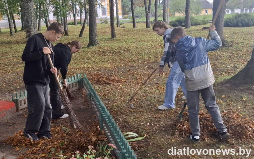 У Дварэцкай сярэдняй школе навучэнцы дружна паўдзельнічалі ў працоўным дэсанце “Квітней, мой сад!”: падгрэблі лісце,  абкапалі маладыя саджанцы, падрыхтавалі да зімоўкі садовыя дрэўцы. Таксама прыбралі тэрыторыю помніка загінулым воінам ад асенняга лісця і сухой травы.