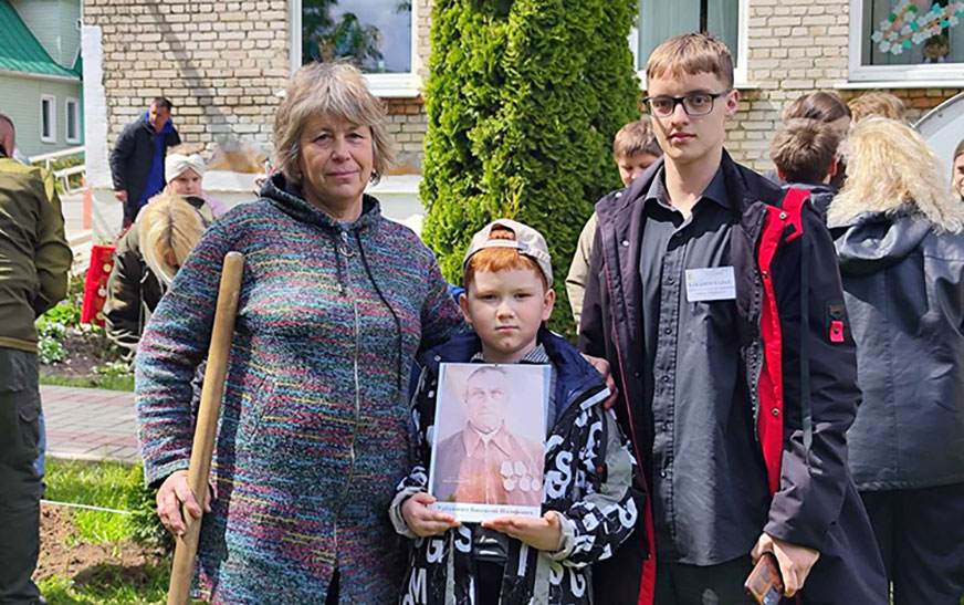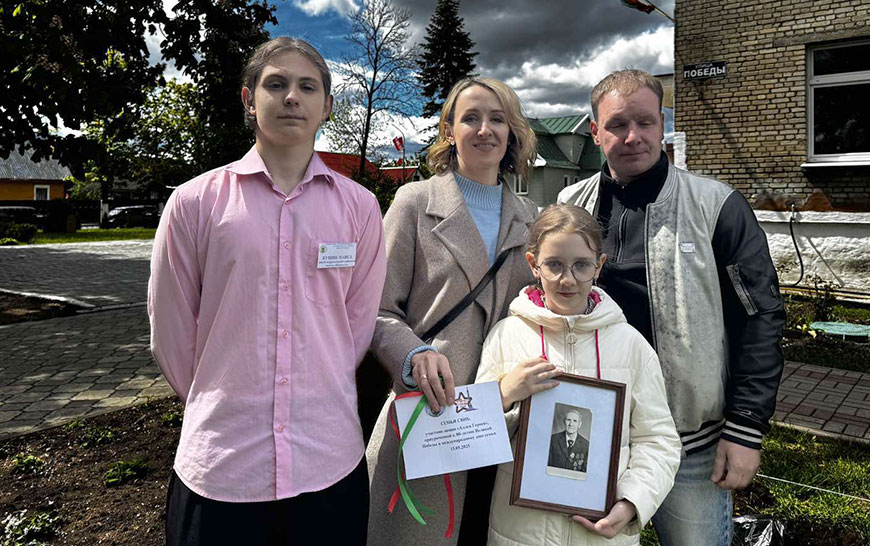 Сям’я Хілімончык прыйшла на мерапрыемства з партрэтам ветэрана Вялікай Айчыннай вайны Вікенція Урбановіча. Са слоў бабулі Таццяны Яўгенаўны сумесныя мерапрыемствы аб’ядноўваюць некалькі пакаленняў, дазваляюць адчуць усе складанасці ваенных гадоў, глыбей даведацца пра гісторыю сваёй сям’і.