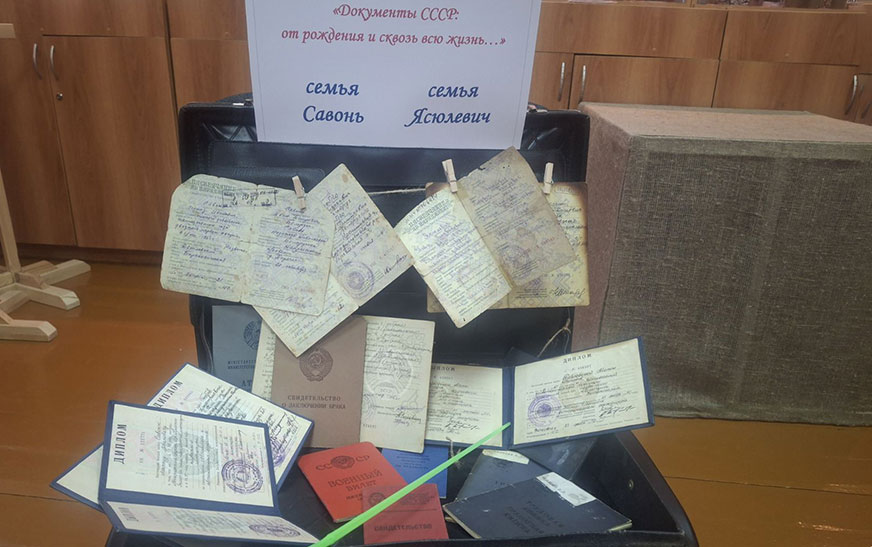 “Дакументальная гісторыя” – сапраўдныя савецкія пасведчанні, працоўныя кніжкі, камсамольскія білеты і ганаровыя граматы, якія расказвалі пра лёсы жыхароў Дзятлаўскага раёна;
