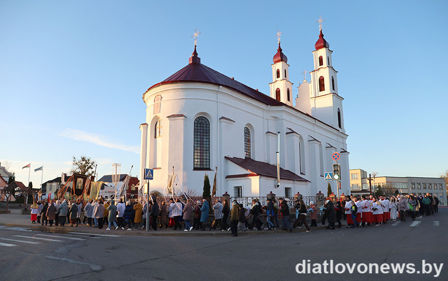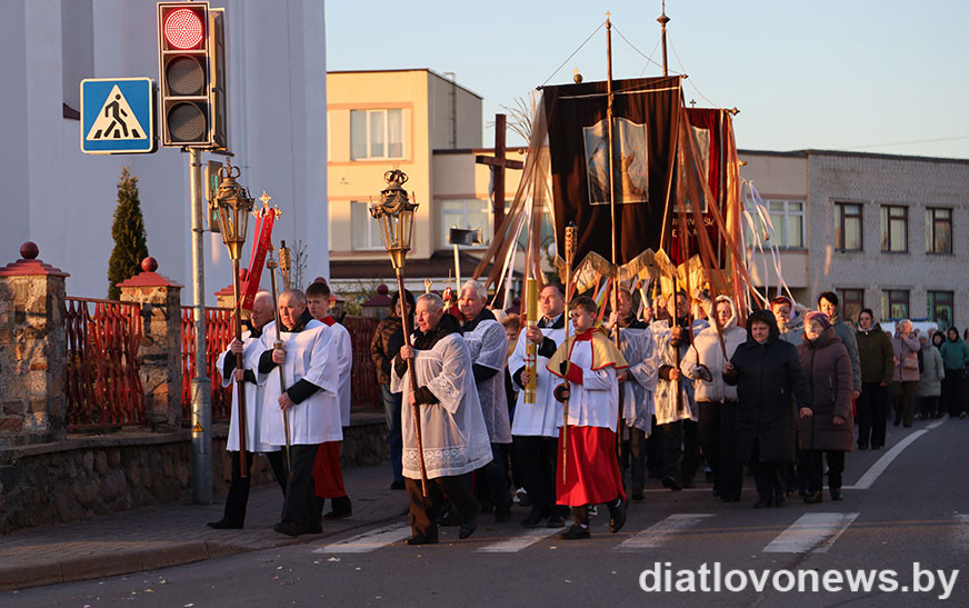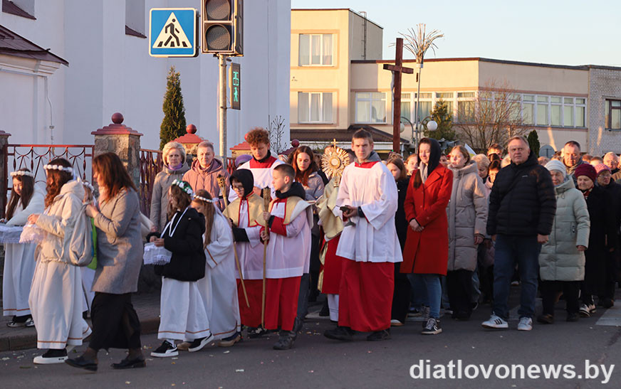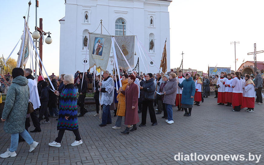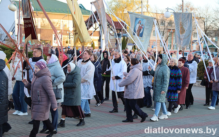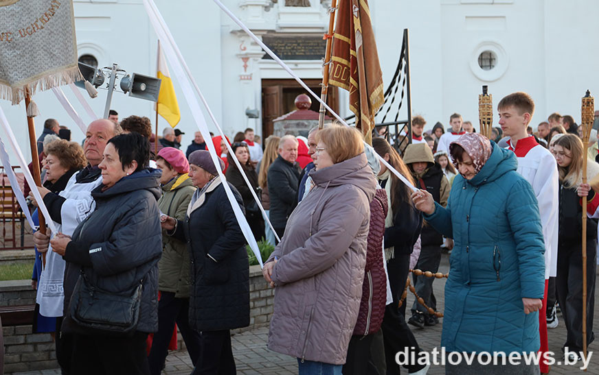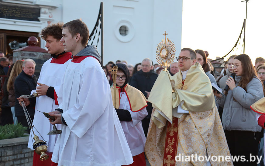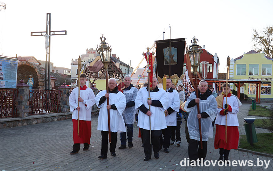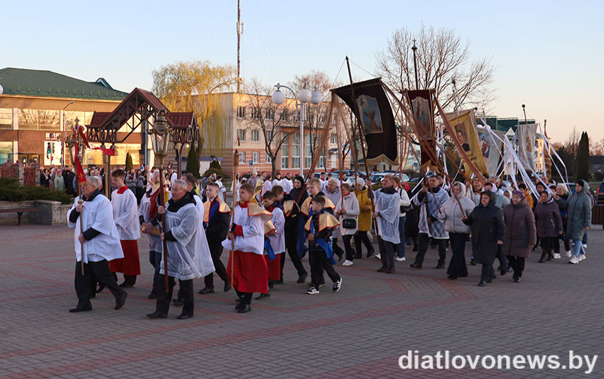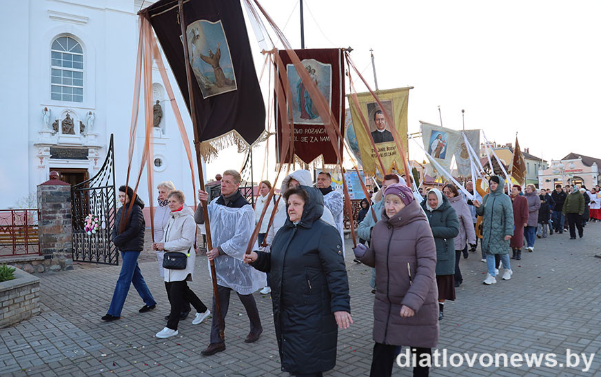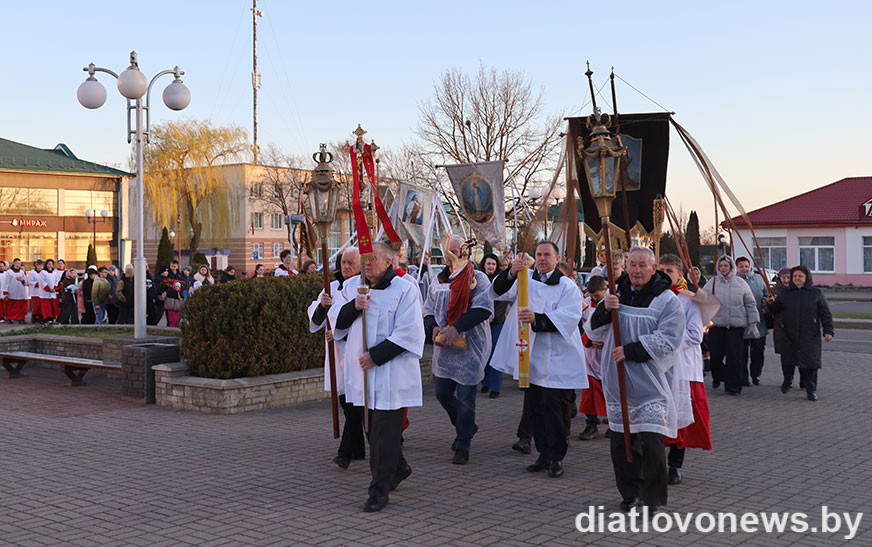 У час шэсця, якое пачалося на досвітку, дзятлаўскія вернікі са Святымі Дарамі тройчы абышлі касцёл, малітвамі і песнапеннямі праслаўляючы Светлае Хрыстова Уваскрэсенне.