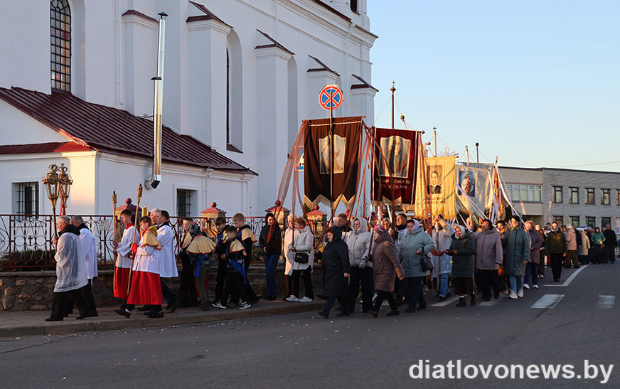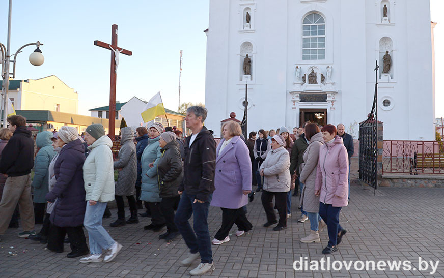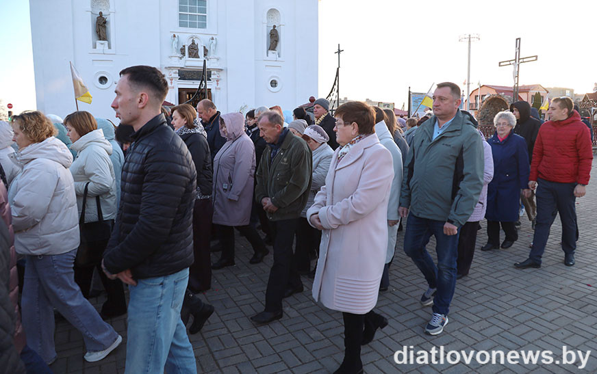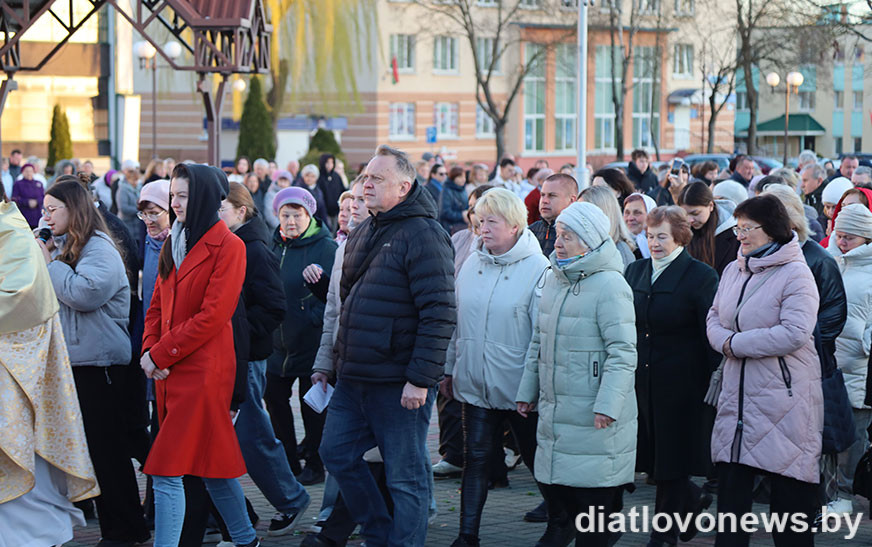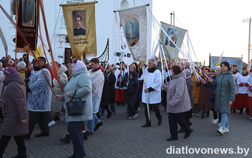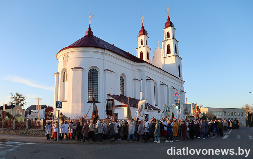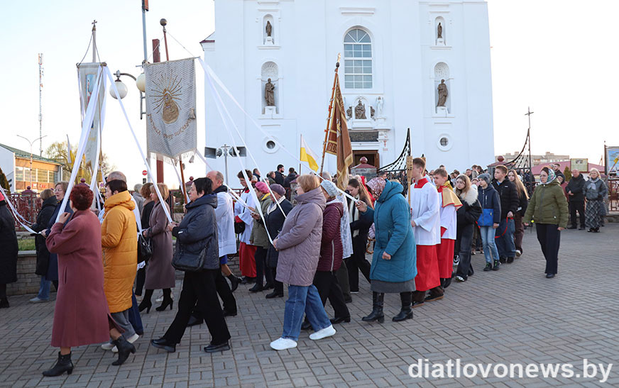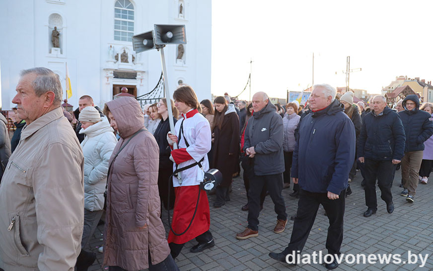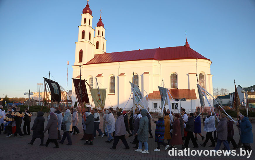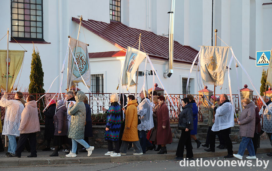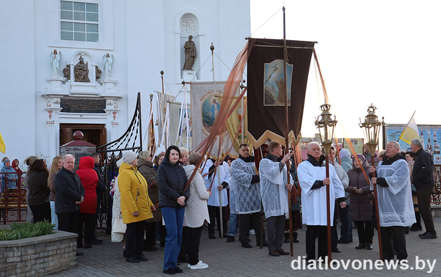 У час шэсця, якое пачалося на досвітку, дзятлаўскія вернікі са Святымі Дарамі тройчы абышлі касцёл, малітвамі і песнапеннямі праслаўляючы Светлае Хрыстова Уваскрэсенне.