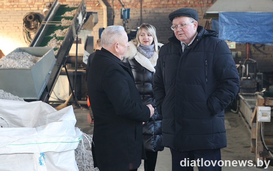 Паглядзелі вытворчасць, яго магчымасці, каб адпрацаваць пытанні набыцця другаснай сыравіны на ўзроўні вобласці. На сёння ў месяц тут вырабляюць 25 тон чыстай прадукцыі – гэта 50 тон перапрацоўкі.
