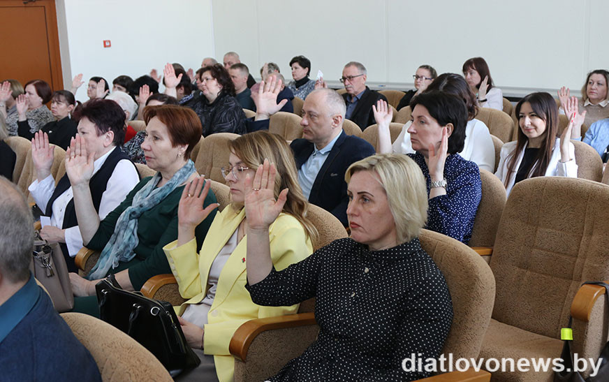 На Дзятлаўшчыне адбылася пазачарговая канферэнцыя раённай арганізацыі рэспубліканскага грамадскага аб’яднання “Белая Русь” пад кіраўніцтвам старшыні арганізацыі Вадзіма Бяляткі з удзелам старшыні раённага Савета дэпутатаў Аляксандра Бараноўскага і начальніка аддзела ідэалагічнай работы і па справах моладзі райвыканкама Вольгі Рагачовай.