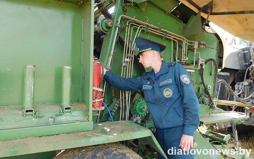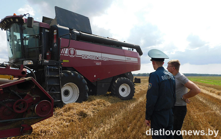 В период уборочной кампании работники спасательного ведомства каждодневно совершают рейдовые мероприятия по местам уборки, хранения и переработки урожая в период проведения уборочной кампании. Инспектор сектора надзора и профилактики Арсений Сенковец проверил дежурство на полях техники, приспособленной для целей пожаротушения и укомплектованность первичными средствами пожаротушения зерноуборочной техники в коммунальных сельскохозяйственных унитарных предприятиях «Хвиневичи» и «Жуковщина».