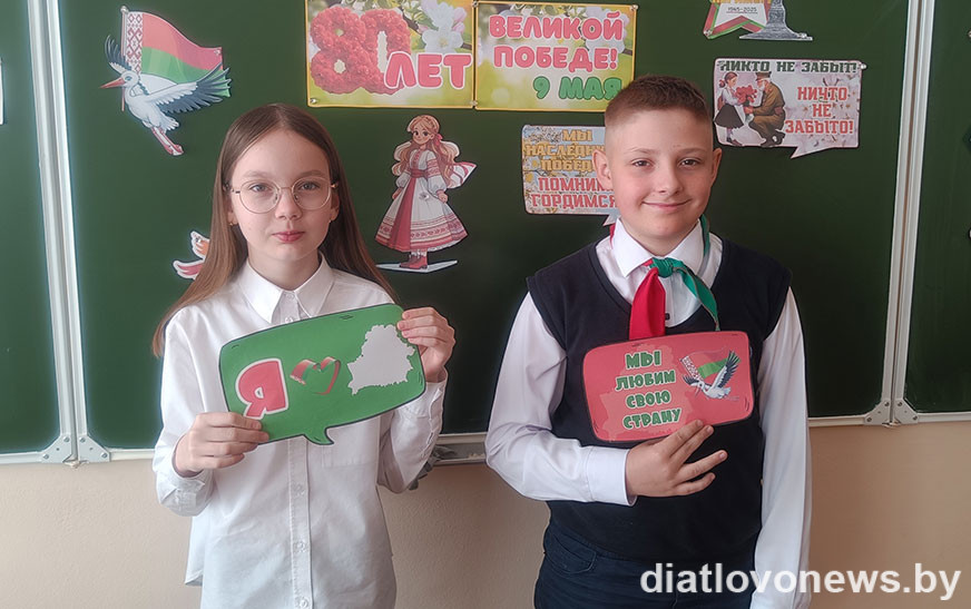 В 6 «Б» классе гимназии № 1 города Дятлово прошел единый Урок Мужества «Чтим. Помним. Ценим», посвященный 80-летию Победы советского народа в Великой Отечественной войне. Учащиеся рассуждали о значении Дня Победы, подвиге белорусского народа , о том, что Беларусь помнит и чтит подвиг павших и живых, известных и безымянных белорусов, граждан, замученных в концлагерях и гетто, тех, кто боролся за Победу в тылу врага. Гимназисты «прошли» фронтовыми дорогами от начала войны до освобождения Беларуси от немецко-фашистских захватчиков. Узнали, какие события происходили на территории Беларуси в период оккупации: о лагере смерти в Тростенце, о сожженных фашистами деревнях, в том числе Дятловского района. Ребята ещё раз прикоснулись к подвигу земляков, героически сражавшихся на фронтах Великой Отечественной войны, высказывали предложения, что нужно предпринимать, чтобы память о событиях и героях войны оставалась жить надолго. Всех нас объединяет одно желание, одна мечта – сохранение мира на земле.