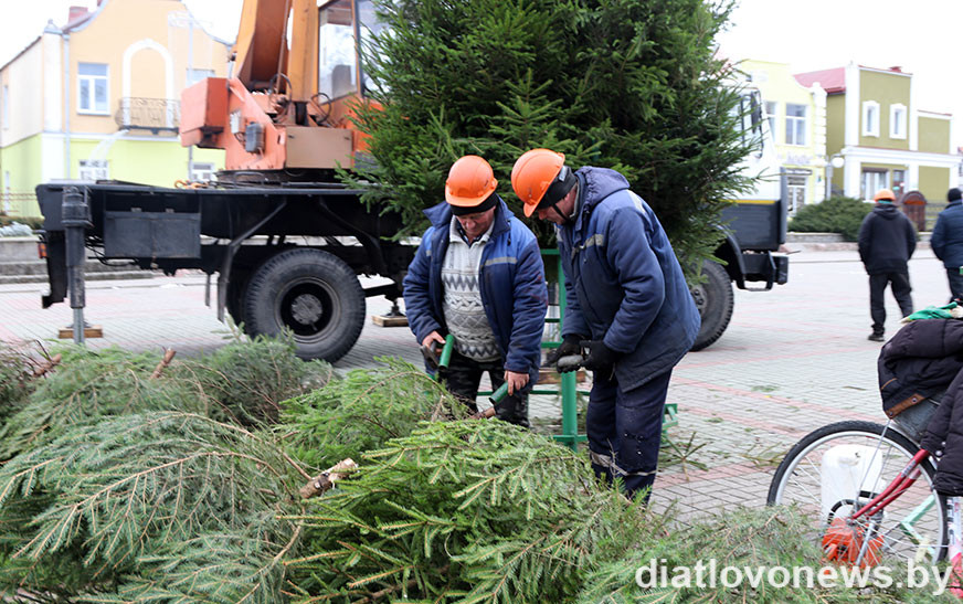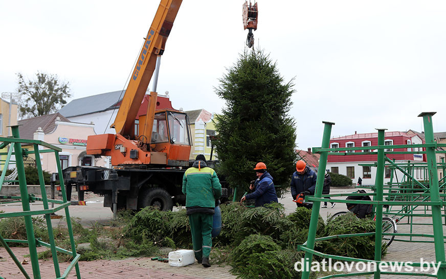 На площади 17 Сентября райцентра уже начали монтаж каркаса новогодней красавицы и живых ёлочек, которые традиционно будут венчать главный символ Нового года.
