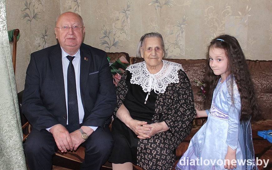 Раней яна жыла ў вёсцы Малдавічы Казлоўшчынскага сельсавета, а вось ужо 23 гады знаходзіцца ў дачкі ў аграгарадку Дзераўная Слонімскага раёна. Дзятлаўчане не забываюць сваю шаноўную зямлячку і штогод наведваюць яе. Сёння з падарункамі і кветкамі прыехалі ўшанаваць дзень яе нараджэння старшыня раённага Савета дэпутатаў Аляксандр Бараноўскі, начальнік аддзела ідэалагічнай работы і па справах моладзі райвыканкама, намеснік старшыні раённай арганізацыі РГА “Белая Русь” Вольга Рагачова, начальнік упраўлення па працы, занятасці і сацыяльнай абароне райвыканкама, старшыня раённай арганізацыі ГА “Беларускі саюз жанчын” Алена Васкель, старшыня Казлоўшчынскага сельвыканкама Ала Гародка, старшыня раённага савета ветэранаў Міхаіл Губар.