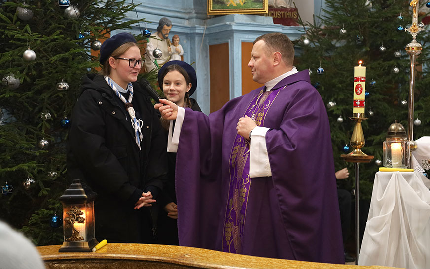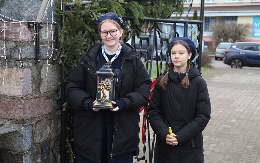 Сёлета скаўты з Віфлеемскім агнём у руках наведаюць 150 каталіцкіх парафій нашай краіны. Гэту шаноўную службу нясуць хлопчыкі і дзяўчынкі з Віцебска, Гродна, Жодзіна, Івянца, Мінска і Полацка, на Дзятлаўшчыну прыбылі скаўткі з абласнога цэнтра, яны прынялі ўдзел у набажэнстве.