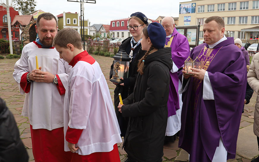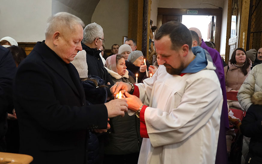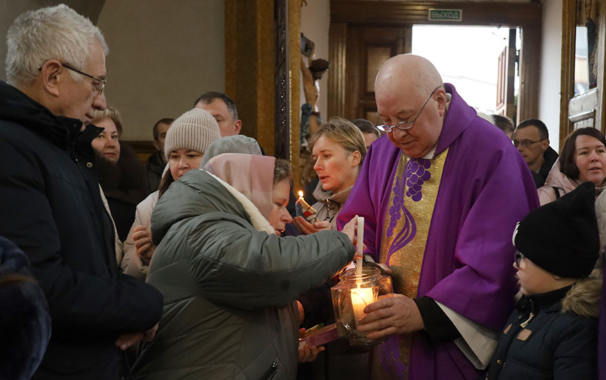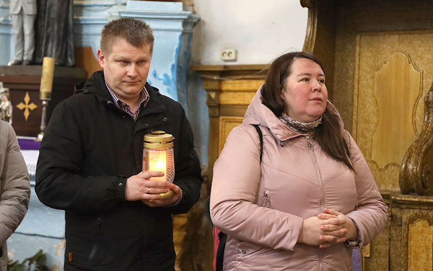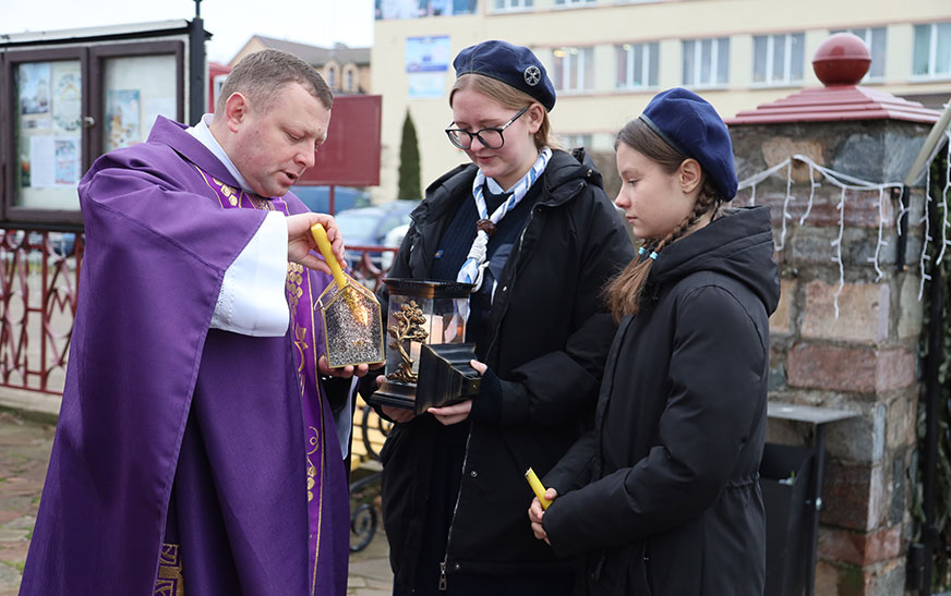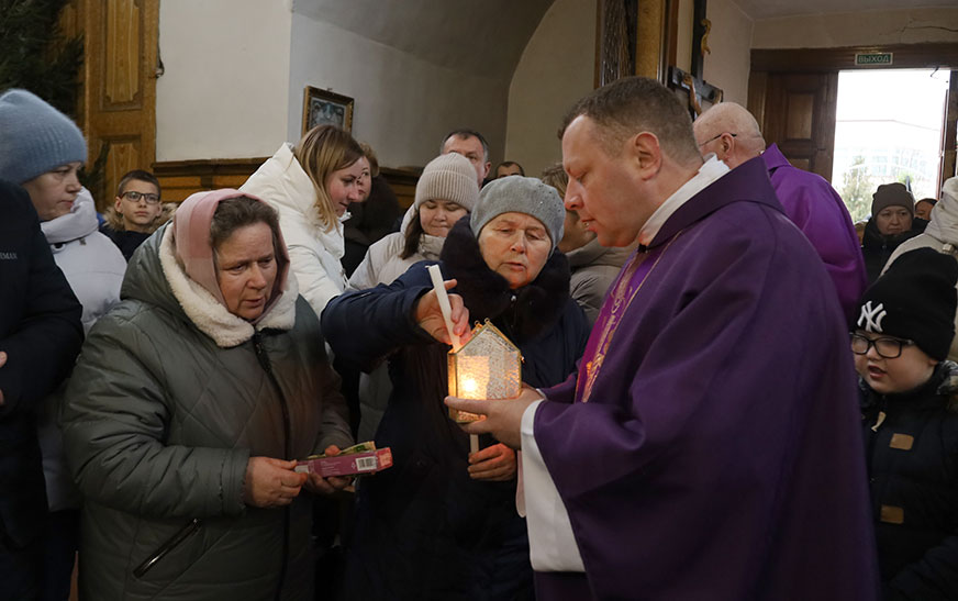 – Святло Віфлеемскага агню – сімвалічнае, яно ў сэрцы кожнага з нас. Галоўнае – пакідаць гэты агонь толькі сабе, а дзяліцца з навакольнымі святлом, радасцю, мірам, супакоем. У гэтым сэнс святла. Сёння мы будзем маліцца за мір і супакой у кожнай сям’і, на Дзятлаўшчыне і ва ўсім свеце, – звярнуўся да прыхаджан ксёндз-пробашч Андрэй Лішко.
