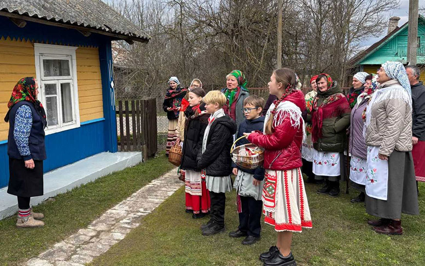 Пад птушыны перазвон і шчырыя ўсмешкі ішлі валачобнікі: у вышываных кашулях, з яркімі стужкамі, з песнямі, што ляцелі проста ў бязмежнае неба. Яны жадалі гаспадарам ураджайнага года, здароўя і міру на зямлі. А ў адказ – пах свежа спечаных караваяў, цёплыя далоні, што клалі ў рукі яйкі, цукеркі, і шчырыя падзякі, што грэлі мацней за вясновае сонца.