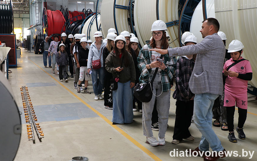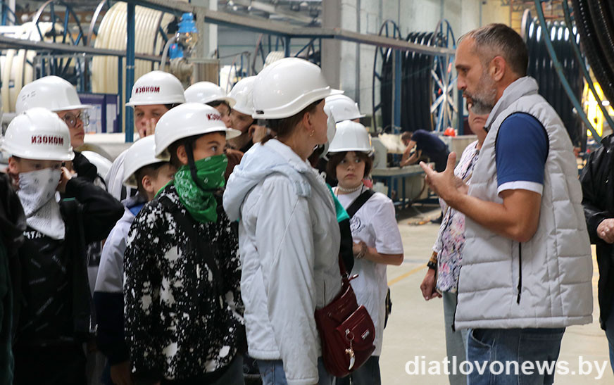 Для юных гасцей і іх педагогаў правялі інструктаж па тэхніцы бяспекі, выдалі каскі і запрасілі пазнаёміцца з тым, як наладжана вытворчасць поліэтыленавых водаправодных труб, запатрабаваных у Беларусі і далёка за яе межамі.