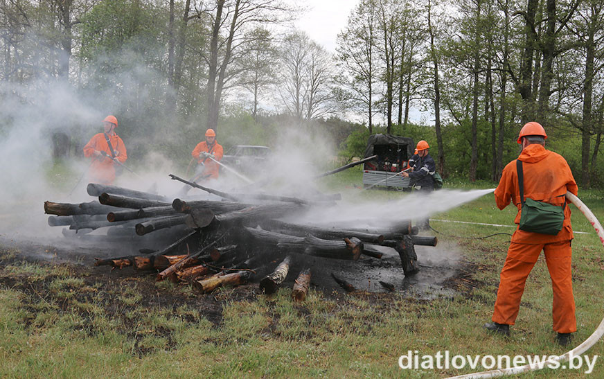 Куратары вучэнняў ад Гродзенскага абласнога ўпраўлення МНС падзякавалі калектыву лясгаса за зладжанае і хуткае рэагаванне, абмеркавалі з імі нюансы адпрацоўкі лясных пажараў.