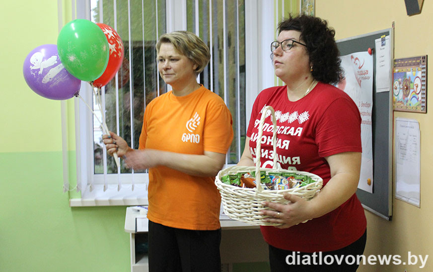 Добры настрой, гульні, пачастункі і прыемныя падарункі выхаванцам установы дарылі першы сакратар раённага камітэта ГА “БРСМ” Кацярына Хілімончык і старшыня раённага савета ГА “БРПА” Ірына Мішчанка.