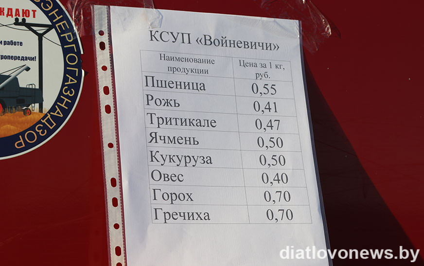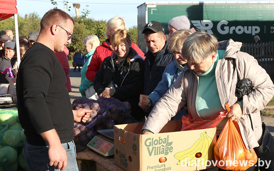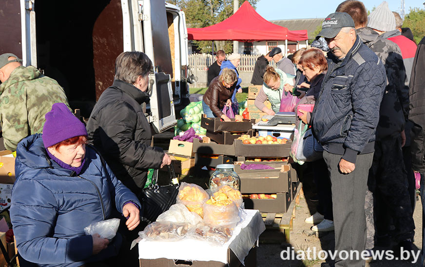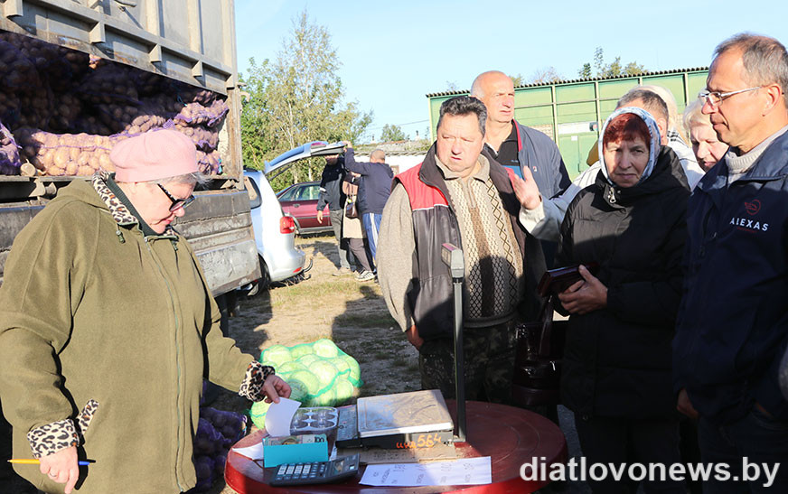 Сваю прадукцыю на продаж прывезлі гаспадаркі раёна ААТ “Граніт-Агра”, “Дварэц-Агра”, філіял “АграМілк”, КСУП “Хвінявічы”, “Войневічы”, “Жукоўшчына”. З іх машын можна было набыць зерне, бульбу, агародніну. Цэны ў сельгаспрадпрыемстваў былі прымальныя: жыта – 41 капейка, авёс – 40, пшаніца – 55, ячмень і кукуруза – 50, трыцікале – 47, гарох і грэчка – 70, ільнонасенне – 1,5 рубля, бульба гатунка “скарб”– 70-80 капеек. “Другі хлеб” карыстаўся попытам у пакупнікоў, бралі адразу па некалькі мяхоў. Ахвотна дзятлаўчане набывалі і агародніну: цыбулю можна было знайсці ад 98 капеек, буракі – ад 80, капусту – ад 54, моркву – па рублю, перац – па 3 рублі. Вялікі ажыятаж быў на яблыкі, іх прывезлі гаспадары ўласных сядзібаў, каштавалі яны па 4 рублі за кілаграм.