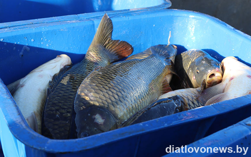 Адразу на дзвюх кропках гандлявалі жывой рыбай. Рыбгас “Лактышы” з Брэстчыны прапаноўваў карпаў па 8,11 і 5,69 рубля за кілаграм, кансервы з алеем – 4,85, з соусам – 4,64 рубля. На другім латку амур, карп, таўсталобік каштавалі 8 рублёў за кілаграм. Новаяльнянскі камбінат хлебапрадуктаў прывёз камбікорм для свіней па 25 рублёў 80 капеек за мех і для курэй – па 34 рублі 80 капеек.