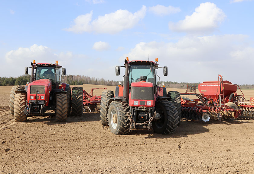 Маючы адпаведныя веды і вясковы вопыт, браты Кастусікі выдатна разумеюць, наколькі важна цяпер найхутчэй захаваць вільгаць і адсеяцца. Увесь светлавы дзень яны ў полі. Вячаслаў заняты культывацыяй, а Аляксандр – сяўбой. Штодня на іх рахунку па 30-40 гектараў, а то і больш.